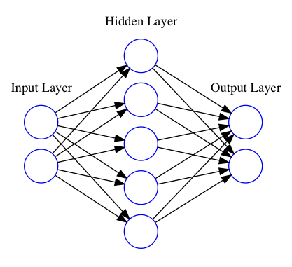 The ANN is composed by a collection of interconnected nodes (artificial neurons) distributed in layers. The connections are responsible to transmit the information from one neuron to another. Once the information arrives at a certain neuron or node, it is firstly processed and then transmited foward. Figure 1 shows the distribution of an ANN, composed by an Input Layer, one Hidden Layer (with \(n_{hidden}\) nodes) and Output Layer. The arrows represent the connections between the nodes. In this context, the "Deep Learning" is commonly referred as a Neural Network with several hidden layers. Initially, the ANN is not able to properly to classify or predict anything. Since it is not trained, the weights and bias terms from all layers are not adjusted to carry out this task. To do so, we use namely two samples of data. The first one is the training sample, which is used to obviouly train the ANN and the second one is the test sample. The former one evaluates the performance of the trained algorithm after the training procedure. As a rule of thumb, the fraction between the training and test samples is around 70%/30% or 60%/40%. In this post, we explain the architecture of the ANN and how the training dataset passes through the Neural Network. The training procedure also needs the Back Propagation, which will be described in the next post.